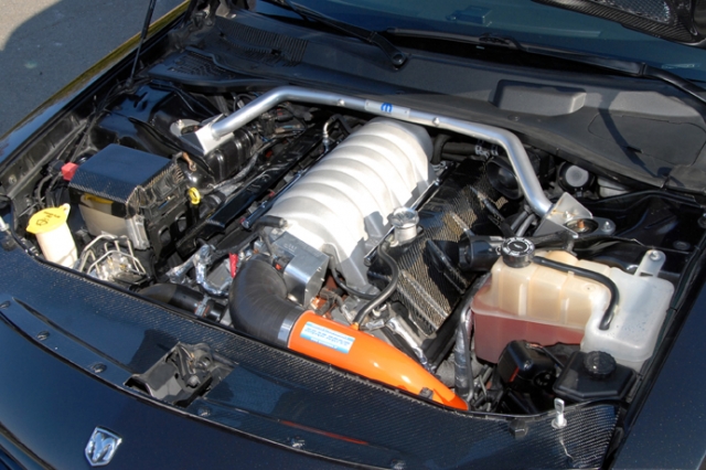 岡部さんの06年型マグナムSRT8は、一見するとノーマル車両にしか見えないが、じつは岡部さんの「マグナムの持つポテンシャルを引き出す」ことを目的に、足回りを中心としたファインチューニングが施されている。
