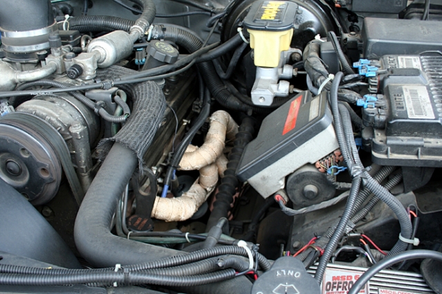 写真中央見える、耐熱バンテージが巻かれたショートチューブへダース。低中速のピックアップの良さを一段と増すことで、濃厚なエンジンフィールにピックアップの良さをもプラスした。SUVに載せるのにはもったいないと思わせるほどスポーティ。