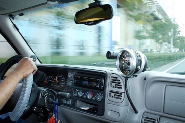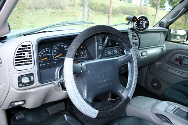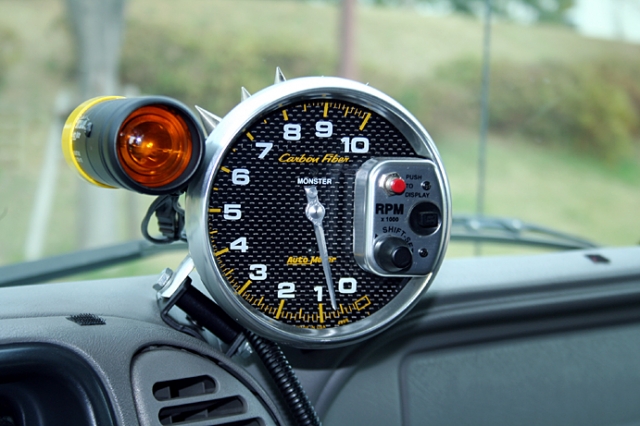 オートメーターのタコメーター。SUVに追加タコメーターはいらないとは思うが、このタホのエンジンになら、あえて付けても良いと思う。