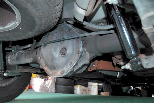 下回りをみると、このクラスにしてはかなり大きなリアデフが付いていることが分かる。デュランゴにはRAM1500と同じアクスルが使用されており、エンジンと同様に性能面でフルサイズクラスと遜色ないことが分かる。また、リアのリーフスプリングは03年型の最終まで一貫してリーフスプリングを貫き通している。