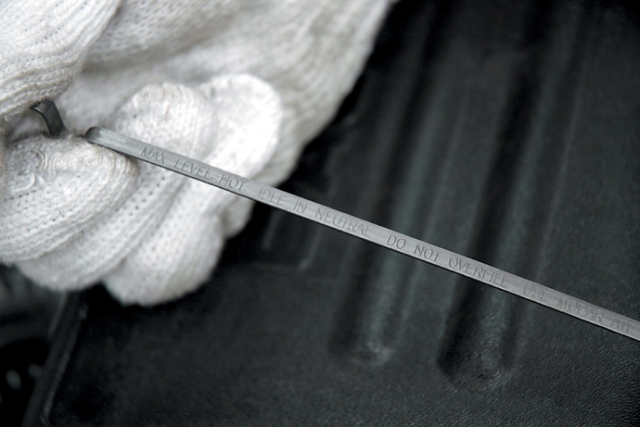 ATFは、走行距離にもよるが、車検ごとの点検・交換が目安。量は定期的に確認しておく。量を確認する場合は、油温が70〜80℃になるまでアイドリングさせ、シフトレバーをニュートラルに入れて計測する。よくパーキングに入れたまま計る人がいるが、それでは正確な量は計れないので注意。オイルはデキシロン3を使用。