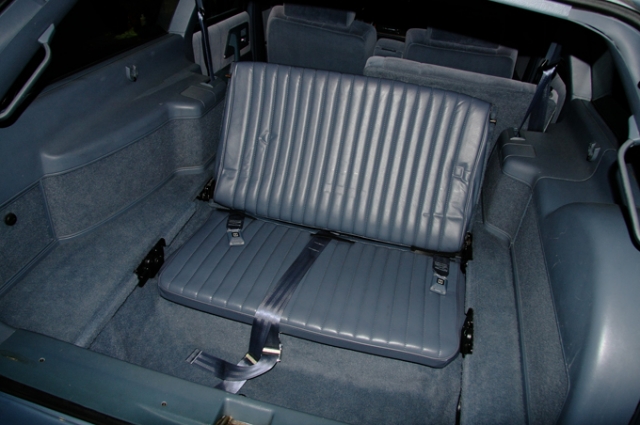 ラゲッジに収納されている逆向きのエマージェンシーシート。移動中にこのシートに座る人は滅多にいないと思います。でも、例えば海辺に停車してこのシートに彼女と並んで座ってビール片手に夕日を見るとか、ね(笑)