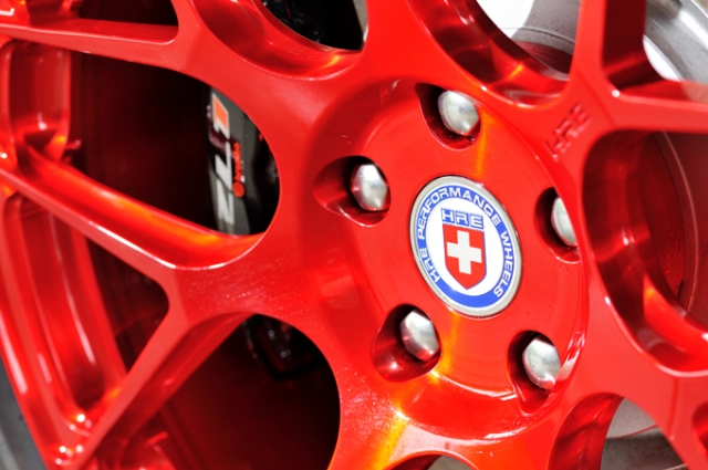 鮮やかなカラーのホイールはHREの1ピース鍛造ホイール『P40SC』。タイヤは純正品を組み換えて使用。足回りはコイルオーバーキット(車高調)で固められている。これらは全てオプション装備となる。