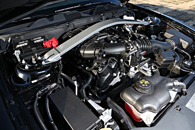 じつは日本に正規導入されるコンバーチブルはV8のみで、V6をチョイスすることはできない。もちろんマッスルカーらしさ溢れるV8エンジンには抗いきれない魅力はあるが、実際、アメリカンな雰囲気を日本の路上で味わうならV6でも十分にコト足りる。特にマイナーチェンジ後の現行3.7リッターV6なら305hpを発揮させるだけになおさらだ。