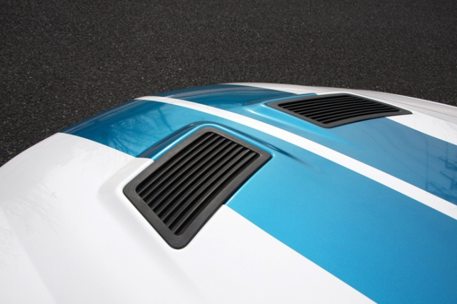 ターコイズブルーメタリックのレーシングストライプが非常によく似合う。