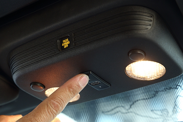 本来、この頭上のスイッチを押し続けることで開閉するようになっている。途中でスイッチを離せば、開閉も止まってしまう。だが、ワンタッチオープンキットを装着すれば、一度スイッチを押すだけで、その後は自動で開け切る、もしくは閉まり切る。