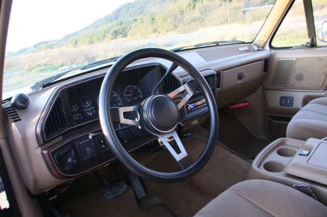 インパネ周辺のデザインは同年式のK5ブレイザーと比べると、乗用車的。最近のフォード車と違って操作方法もスイッチやツマミなので、初めて乗った人でも何の苦労もなく運転できる。