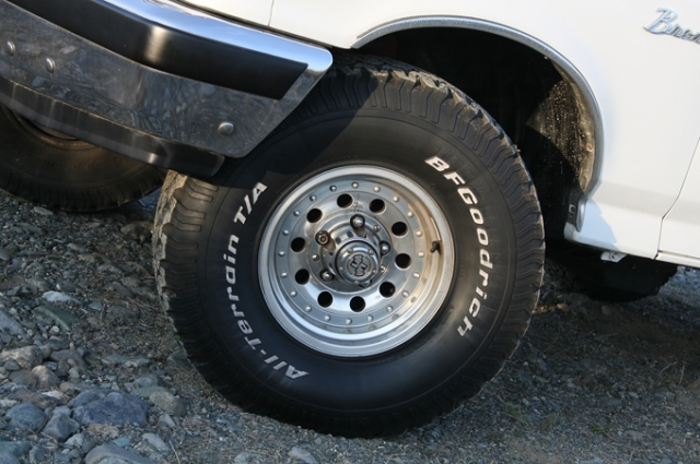 タイヤはBFグッドリッチのオールテレーン。ブロンコ用のリフトアップキットは数多く市販されているが、今となってはノーマルに近い車高の方がお洒落だろう。