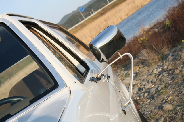 古いアメリカンSUVならではの足付きの大型サイドミラーは視認性に優れるだけでなく、スタイル的にもグッド。この年代のアルミパーツの輝きは現代的なメッキパーツのものとはひと味違う。