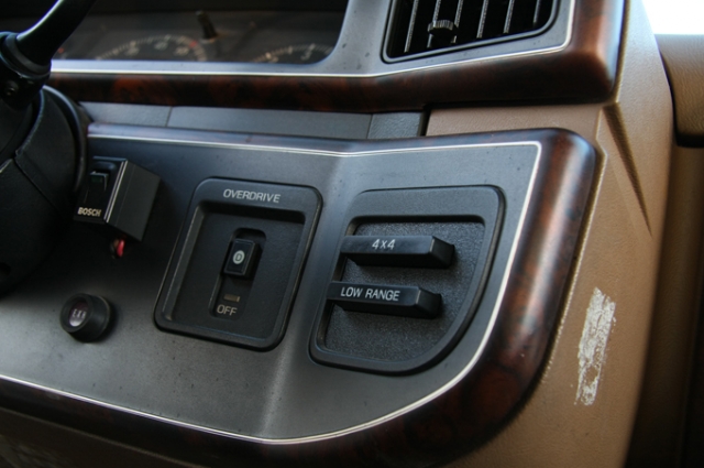 オートマチックトランスミッションのオーバードライブのON/OFFや、四輪駆動のLOWモードの切替などはインパネサイドにあるボタンで行う。この辺のスタイルもちょっと古めのフォード車ならではの『味』だろう。