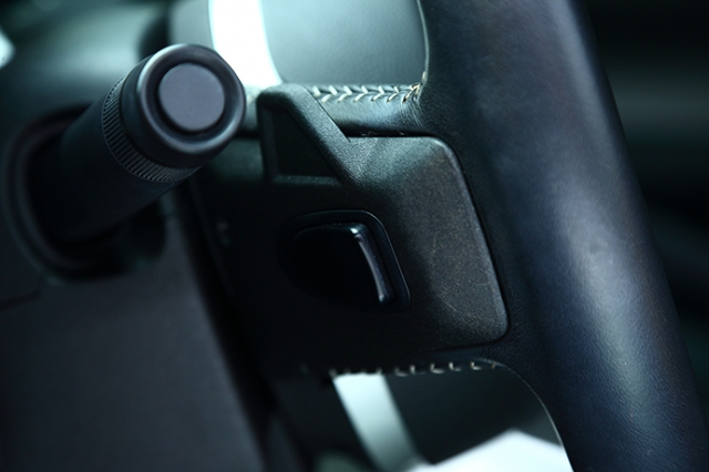 ちなみに、ステアリング裏に「+−」ボタンがあり、そのボタンによってギアチェンジが可能である。思っている以上に変速スピードが速いが、パドルと違ってステアリングを切りながらのボタン操作がやりにくいのが残念。