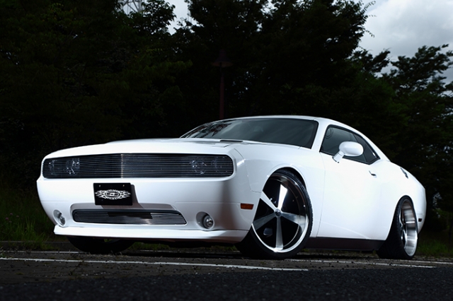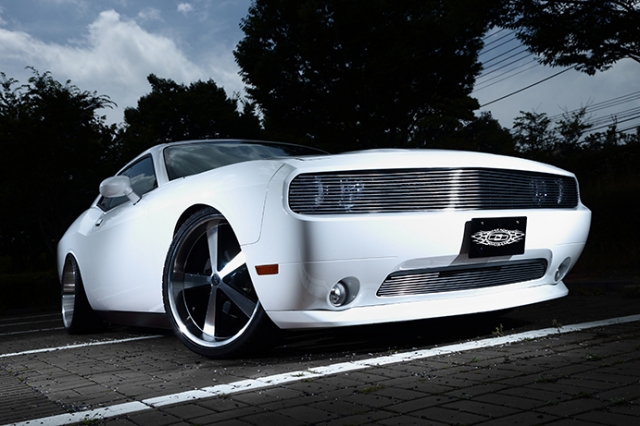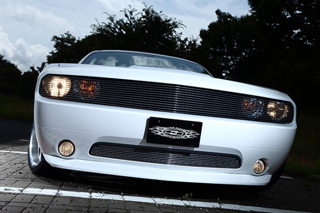 ワイド感のあるボディに、クールなファントムグリルを装備して、22インチホイールと車高とを上手くアレンジし、ワイド&ローの絶妙な仕上がりを見せるチャレンジャー。マッチョなアメリカンムードを濃厚に感じさせる1台は、巷に溢れたレーシーなーチャレンジャーとは、ひと味違う洗練されたムードがいっぱいである。