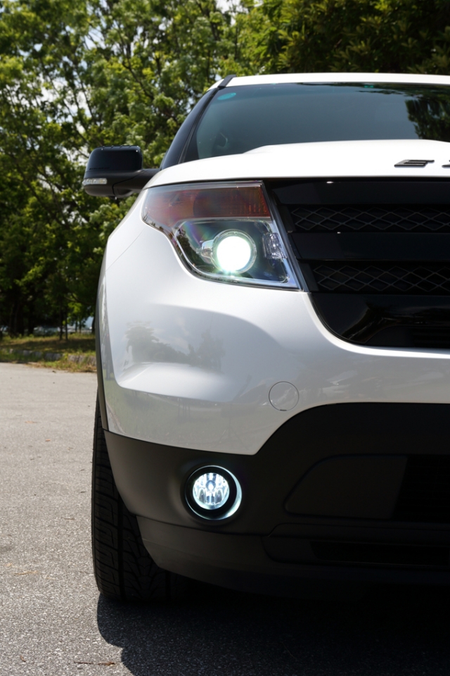 このFSスポーツパッケージは、現行フォード・エクスプローラーの正規輸入車に、アメリカ本国で販売されているリミテッドタイプの20インチホイール(カラーはマットブラックまたはステンレスシルバー)、同じくアメリカ本国のエクスプローラー・スポーツ専用の純正グリル(カラーはブラックのみ)&ボンネットエンブレム&ゲートエンブレムを装着。さらには、フォード新滋賀オリジナルのランニングボード、HIDヘッドライト&HIDフォグランプ、LEDフォグランプを装着したもので、日本では販売されていない3.5リッターV6エコブーストを搭載したエクスプローラー・スポーツをベースに、さらにドレスアップしたような精悍なスタイルを実現している。