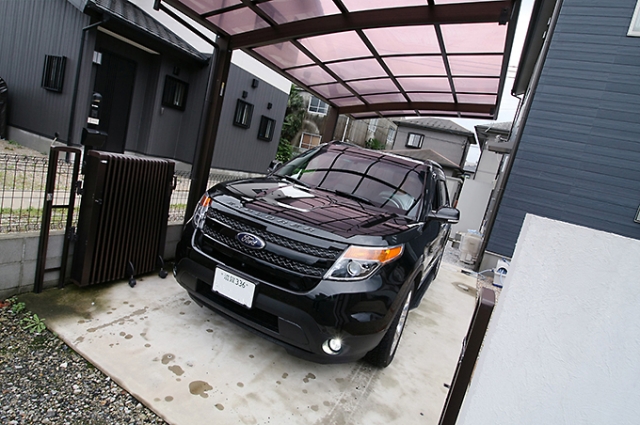 自宅のカーポートは広めなのでエクスプローラーのサイズも楽に入るが、「バックで車庫入れするので、この時だけは左ハンドルで良かったと思います(笑)」とのこと。