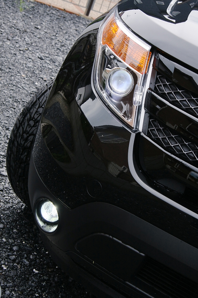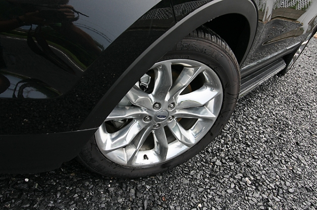 エクスプローラー・スポーツタイプの20インチホイールやボンネットエンブレム、HIDヘッドライトやフォグなど、多数のディーラーオプションパーツが装着されている。