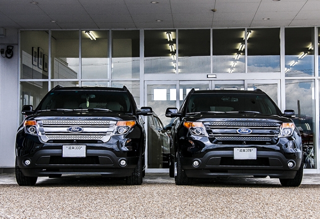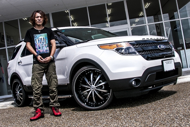 高田さんの愛車。2011y Ford Explorer XLT EcoBoost。『FSスポーツパッケージ』というフォード新滋賀オリジナルのディーラーパッケージ車で、エクステリアを中心に様々なドレスアップが施されている。