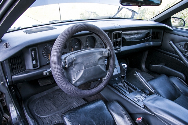 大型の4連メーターの配置がスポーティだし、ダッシュボードが高く、ヒップポイントが低いという着座位置との関係性も、90年代のアメ車ならではだ。シフトノブのみ社外品に交換されている。