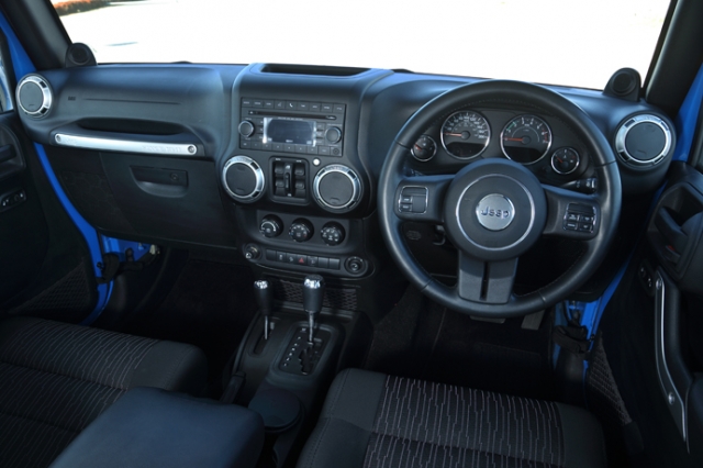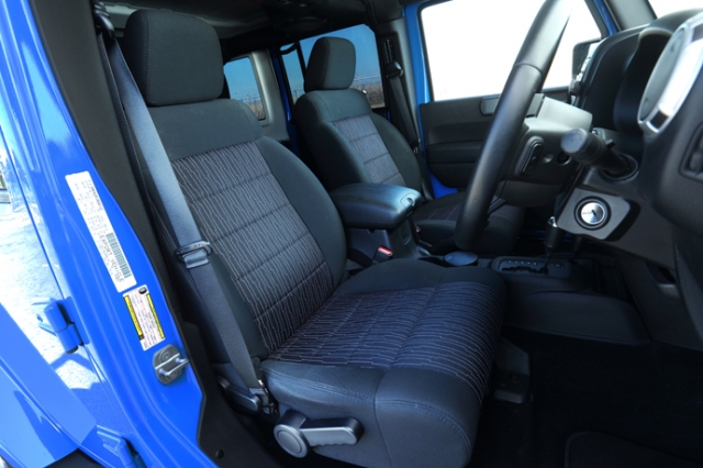 硬質なファブリックシートはラングラーの性能に似合っている。ラングラーは、屋根を外せるし、その気になればドアだって外せ、カーペットを外せばフロアを水洗いできるなど、アクティブな使い勝手も良好である。