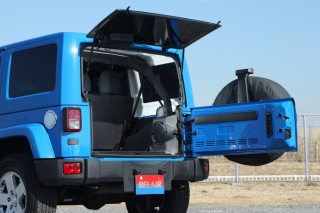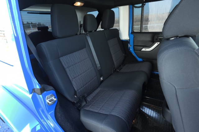2ドアジープとBピラーまでのデザインは同じであるが、ホイールベースを520ミリ延長することで全長を拡大し、4ドアモデルを誕生させたのである。これにより後席のレッグスペースには余裕が生まれ、荷室も2ドアラングラーの倍以上の奥行きが確保されるようになったことで、さらにハードトップ仕様となったことで、実質ファミリーカーとしての機能をも持ち合わせることになったのである(乗車定員も2ドアの4名に対して、4ドアは5人に増えた)。