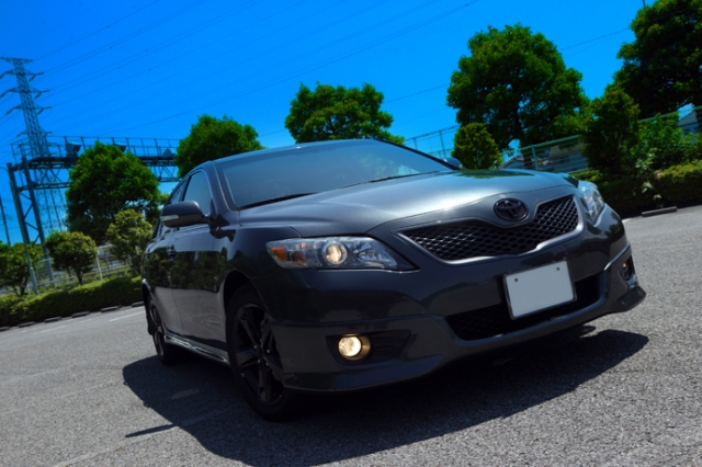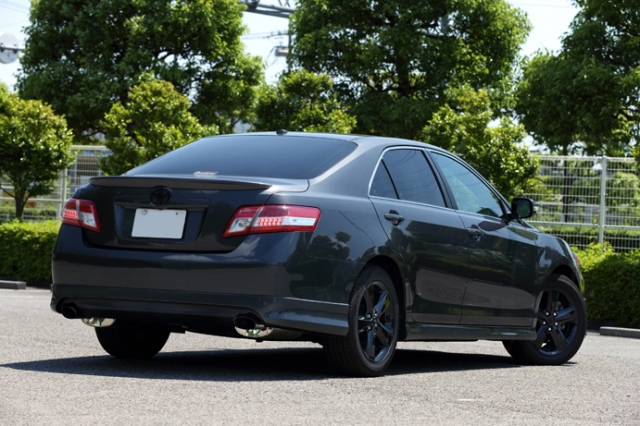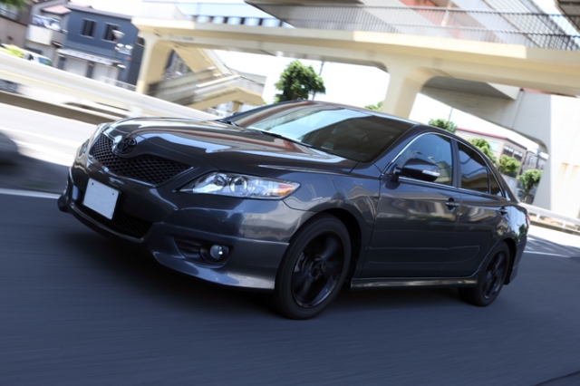 で、このカムリ。2011年型でTRDのマフラーが付く以外フルノーマル。ホイールがブラックペイントされているが、足もノーマル。