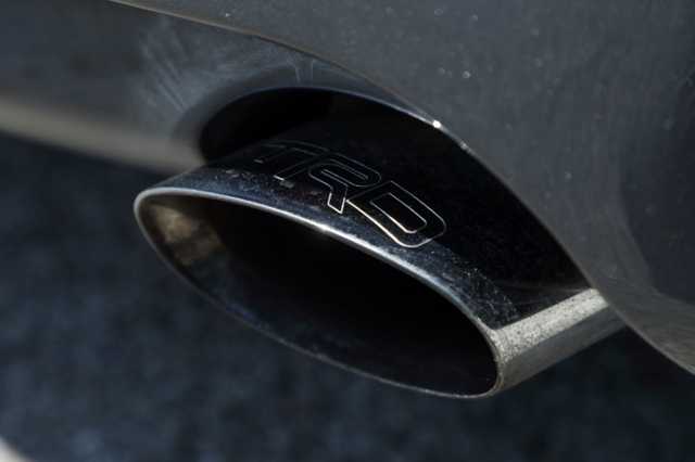 TRDのマフラーに換装されている。ノーマルとは異なる心地よい野太いサウンドを響かせる。