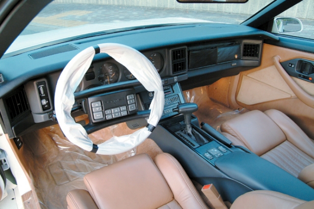 撮影時に最初にチェックしたのは走行距離。オドメーターの数字は49マイル。輸送時に少し走行距離が延びたようだが(トリップメーターの方が28マイルとなっていた)、正真正銘の新車(新古車)であることは、状態の良さや数々の装備品が証明していた。アメリカでこのクルマを所有していたオーナーは相当几帳面なマニアだったらしく、取り説は当然として、当時の新聞の切り抜きなどもきちんとファイルして保管してあったのだ。