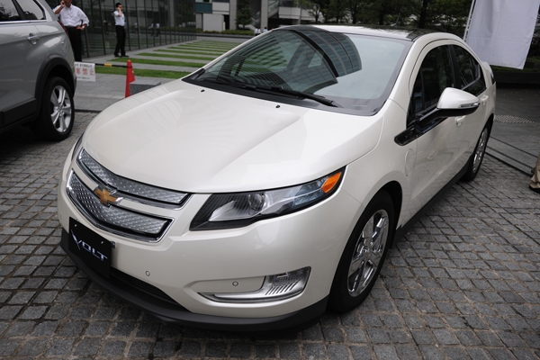 話題のE-REV、シボレー・ボルトです。今回の試乗会の連絡を受けた際に「キャプティバ以外にもサプライズを用意してますからお楽しみに!」と言われてたんですけどね。ボルトが展示されてるとは思いませんでした。早いとこ乗ってみたいですねぇ!