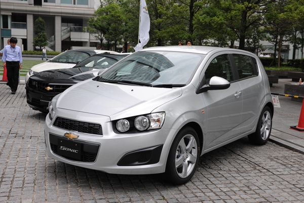 シボレー・ソニックです。初めて実物を見たんですが、なかなか良いんですよね。私はあんまり小型車には興味ない方なんですが、このクルマはかなり好感触でした。日本への導入が決まってるそうですが、これも早く乗ってみたいですね。