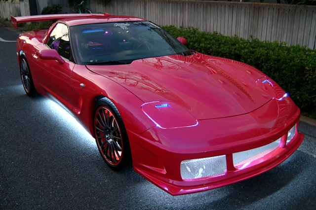 出来上がりのこのC5を見て、さまざまな感想をお持ちになると思うが、個人的にはなかなか面白いと思っている。正直、ガルウイングだけは性に合わないが、その他の雰囲気、派手さ、すべてにおいていろいろ辻褄があっており、ピンクのボディカラーと赤ラメのホイールのマッチングも悪くなく、後からリペントした違和感のような、もしくはハズレ感がまったくない。