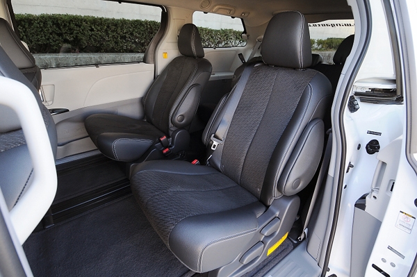 シエナのシートで筆者がとくに良いと感じたのは、前後に500mm以上もスライドするセカンドシート。試乗車はフリップダウンモニターを装備していたこともあり、セカンドシートを思いっきり後ろにセットしてリクライニングさせた状態は、まさしくリラクゼーションルームといった感じ。コンバージョンメーカーの制作するリムジンほどではないが、絶対的な広さとも相まって、十二分に快適なシートと言えるだろう。