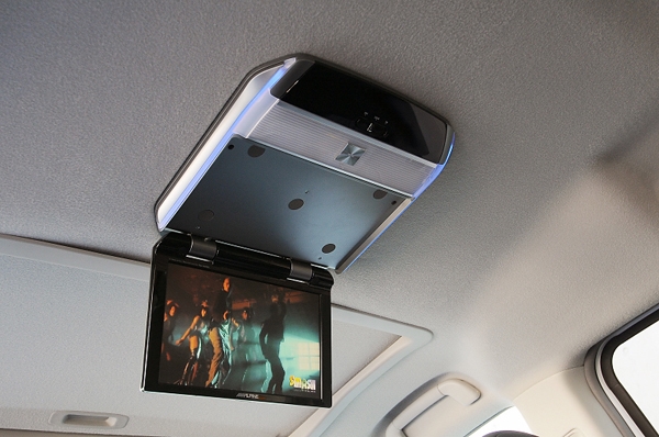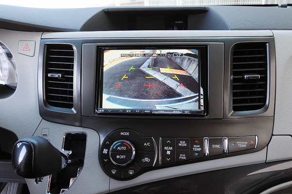 アルパインBIG-X HDDナビゲーションは、エクスプライドの国内ナビゲーションインストール専用取付キットにより、自然な感じで装着されている。当然ながらバックモニターとも連動している。