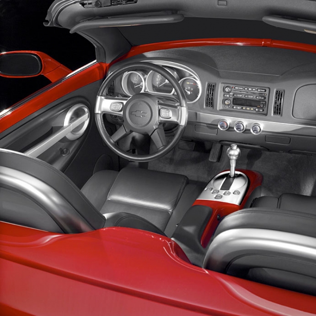 シボレートラックの系譜を辿るような質素なインパネではなく、まるでコンセプトカーさながらのようなインテリア。ボディと同色のカラープレートがインパネにも用いられ、華やかさが増している。