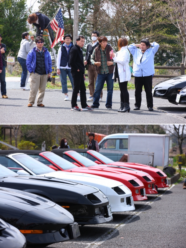 ミルクランドに到着後、車両を並べ各自参加者たちのアメ車を見ながら、愛車談義に華をさかせる。これだけのサードカマロが一同に集まったシーンを久々に見た気がする。かなり壮観。