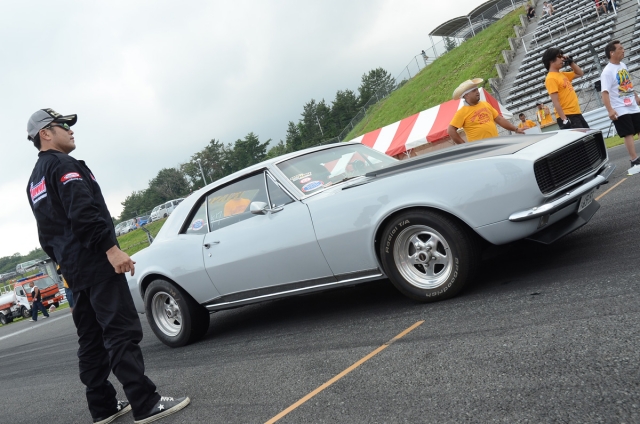 今年もストリートクラスからトップフューエルまで、さまざまなマシンが出走。往年の50sやマッスルカーなど、希少なマシンで参加したドライバーも遠慮なくアクセルをべた踏みしていた。写真は1967年式と思しきシボレーカマロ。