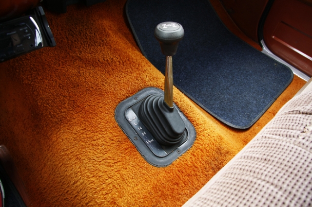 副変速機のトランスファースイッチはフロアレバーになっている。細身の華奢なレバーが昔のアメ車ならでは。