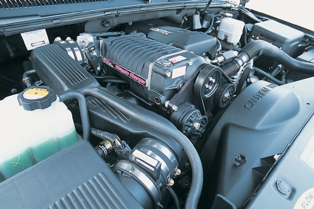 このサバーバンにはウイップル製のスーパーチャージャーが装着されている。ベースの285hpから375hpにアップしているから、その変化は劇的だ。