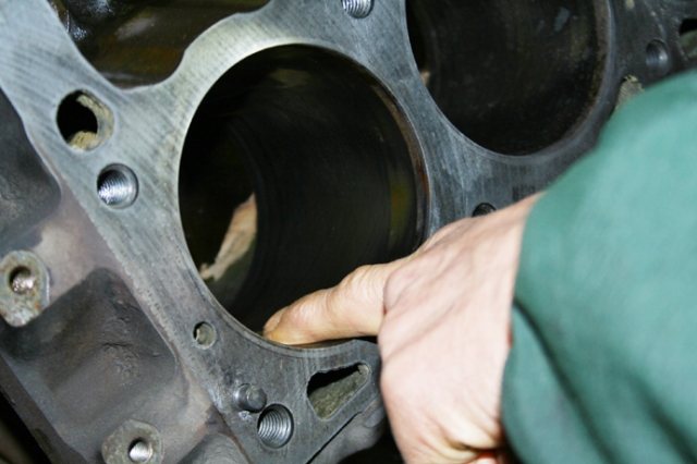 エンジンブロックのシリンダー内壁をひとつずつ確認中。この内壁にはピストンとシリンダーが擦れ合う際に必要なオイル潤滑の「クロスハッチ」と言われるキズが必要であるのだが、距離を乗ることでそのキズがなくなっていくという。で、そのキズがなくなっている場合は、オーバーホール時に再度キズを復活させる必要がある。その確認中。