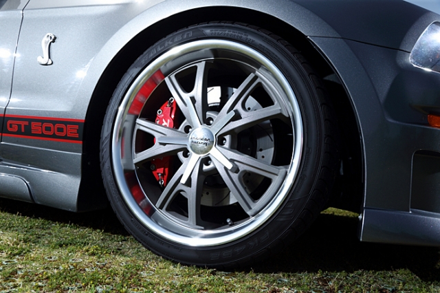 エレノアにセレクトされている20インチのアメリカンレーシング製ホイール。ホイール内には、オプションでセレクト可能となっているウイルウッドの6ポッドブレーキキットが装着されている。この他にもショック等も変更可能である。