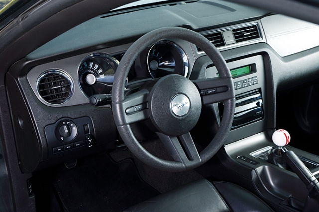 ベース車は6MT搭載車で、ボール型のシフトノブを装着している。これだけでレーシーな雰囲気になる。マスタングの6MTは、ゲートが明確でストロークが短いのが特徴。思っている以上に楽しめるファンなMTである。