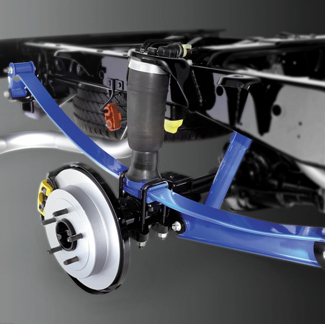 アンチワインドアップバーで補強された1枚構成のリーフスプリングとエアサスペンションの組み合わせで、トラックらしからぬフラットライドな走りが可能となっている。