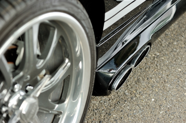 エレノアのマフラーは実際にはボディ下部で排気する方式となる。ただし、本物のサイドマフラーとするかダミーのサイドマフラーチップにするかはオーナーの判断となる。