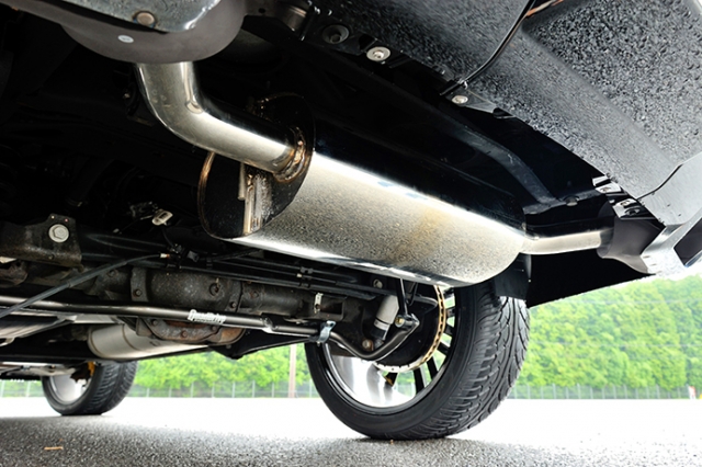 トルクアップ仕様の2本出しワンオフマフラー。音質にもこだわり、意外に静かなモノを製作したという。ここらへんもハイブリッドであるからこそのパーツ製作となっている。