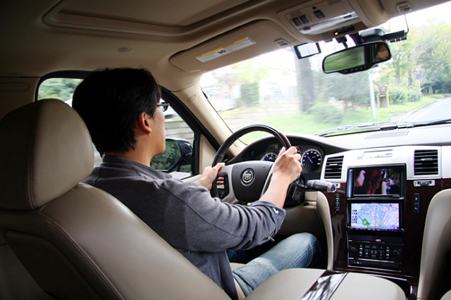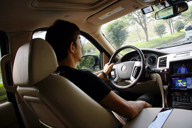 いざ出発である。エンジン始動から独特であり、いわゆる始動時の爆音がまったくない。だが助手席からの雰囲気は紛れもないエスカレードである。