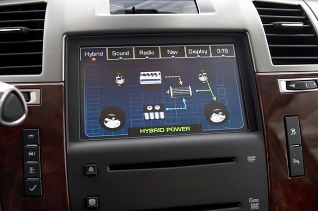このエスカレードハイブリッドには、6リッターV8エンジンが搭載され、332hp、最大トルク50.8kg-mを発生させるが、これは同時にノーマルのエスカレードに搭載される6.2リッターV8エンジンよりも若干のパワーダウンを伴うものになる。だが、実際に乗るとモーターでの走行時からエンジンに切り替えられる制御が巧みで、かつ4速ATのレシオを変えることで、力不足をまったく感じさせず、少なくとも低速での扱いはノーマルV8パワーにまったく引けを取らないし、十分に速い。