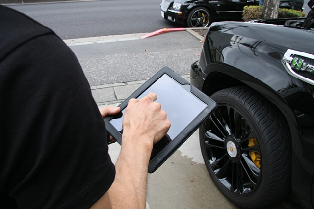 i Padを使用してドアロックやエンジンスタートをリモコン操作することができるようになっている。もちろんi Phoneでも可能。