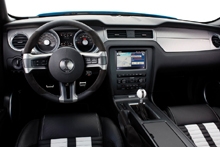 室内は、ベースとなるマスタングの意匠を引き継いでいる。だが、レーシーな雰囲気をうまく演出している。