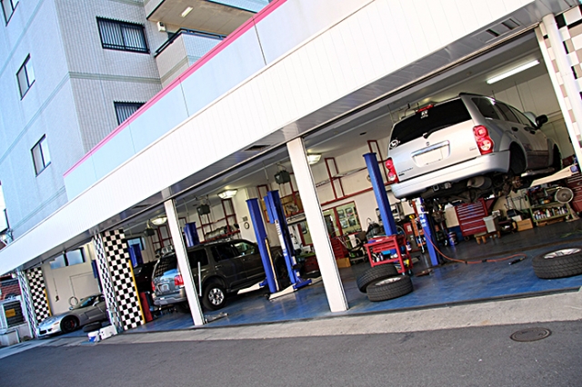 『B.C.D』の基幹店であるBUBU横浜には、5機のリフトが並び車両のメンテナンスや機関チェックを行っている。