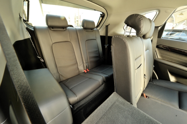 サードシートは意外に座れる。段差が低いために足を伸ばす形で座ることになるが、頭上スペースはしっかり確保されている。ただし、大柄な人の乗降は少し大変。