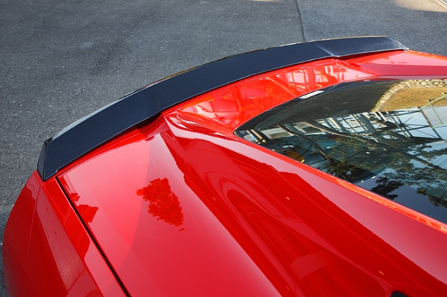 ボディサイドミラーと写真のリアスポイラーは、Z51の専用装備品。ともにブラックペイントされるが、空力的にもデザイン的なアクセントとしても有効。ちなみにブラックのボディカラーだと同色となる。
