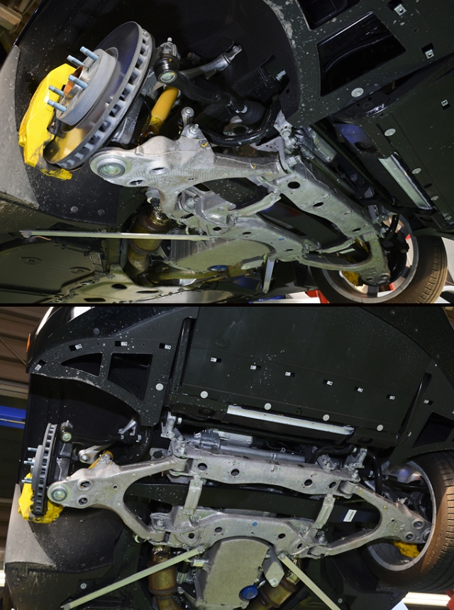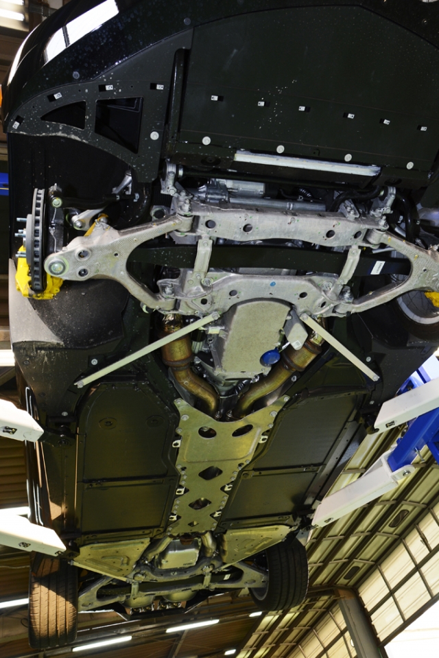 そして、フレーム以外でも、カーボンファイバー製のボンネット&ルーフ、カーボン・ナノコンポジット技術を採用したアンダーボディパネル、フェンダー、ドア、リアクォーターパネル、リアハッチパネルなどの徹底的な軽量化により、ボディ自体もC6よりも17kgも軽くなっており、さらにはサスペンションにまで細かな軽量化が図られている。